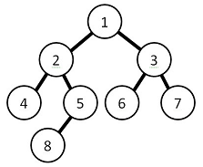 - c) 1, 2, 4, 5, 8, 3, 6, 7