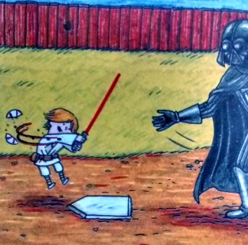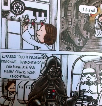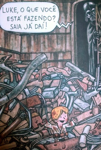 O autor traz situações cotidianas nas ilustrações o que é bastante cômico considerando que Vader é um grande vilão.